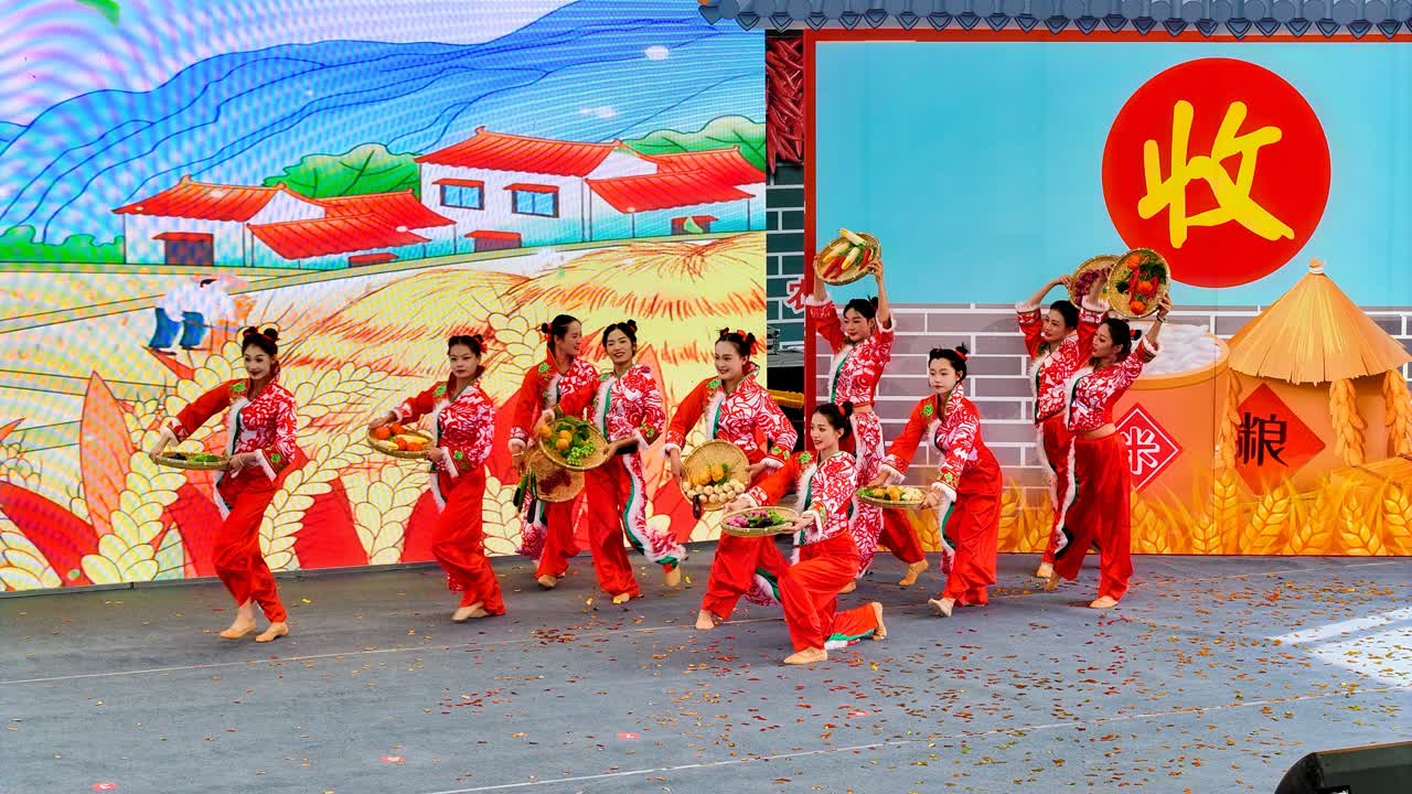上午9时30分,活动在欢快的开场舞《盛世欢歌》中拉开帷幕。启动仪式上,领导嘉宾与农民代表共同上前,携手按下象征“丰收”的启动开关。开关按下的瞬间,金色碎片如丰收的麦穗般从舞台两侧喷涌而出,伴着微风四散飘落,仿佛大地丰收的生动写照。